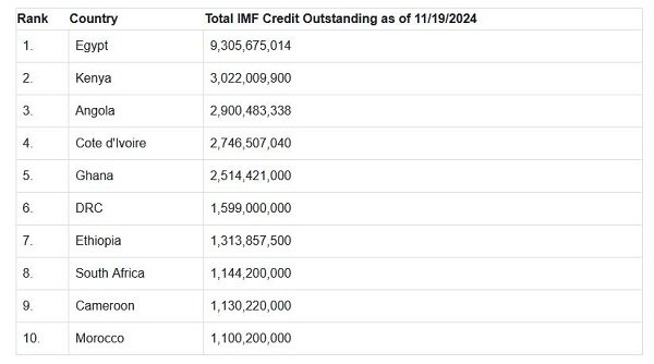 Top 10 African Nations by IMF Credit Outstanding (as of 11/19/2024)